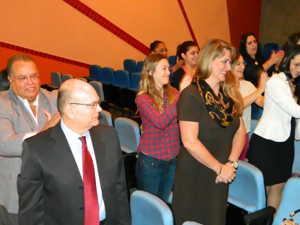 Da esquerda: José Floro de Barros; a coordenadora do DHO Cássia Vendemiatti; a diretora do Departamento Silvia Luna; e Levy Corrêa.